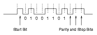 Asynchronous links lack any form of clock signal. Rather, a start bit is used to signal the beginning of a transmission. Once the receiver has seen the start bit, it begins counting bit times according to the pre-configured line speed:
