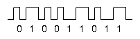 In this example, every zero bit is encoded as a full clock cycle, while one bits are encoded by skipping a transition in the middle of the cycle. The decoding circuitry is more complex, but fewer wires are required in this scheme.