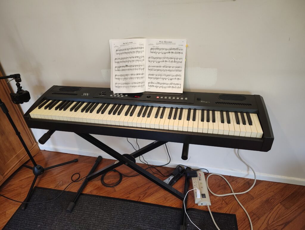 I bought a used keyboard (with a stand) for $100 on ebay. The seller was local, so I drove over, checked the condition of the keyboard, paid him, and drove off with it. It’s a Williams Allegro Model 1, which doesn’t have a great reputation, but that’s primarily due to the poor quality of its sound engine. It’s got 88 keys, weighted action, with a MIDI interface, and that’s all I need for my purposes.